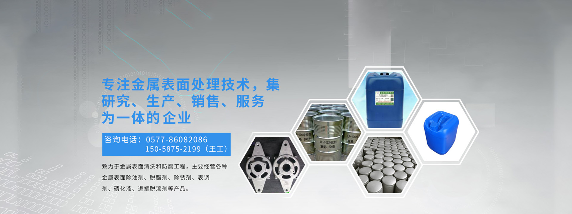 溫州龍飛環保科技有限公司致力于金屬表面清洗和防腐工程,主要經營各種金屬表面除油劑、脫脂劑、除銹劑、表調劑、磷化液、退塑脫漆劑、除蠟水、防銹水防銹油、封閉劑、鈍化劑、發黑劑、著色劑、化學拋光劑、合成乳化劑、水處理劑等金屬表面處理劑
